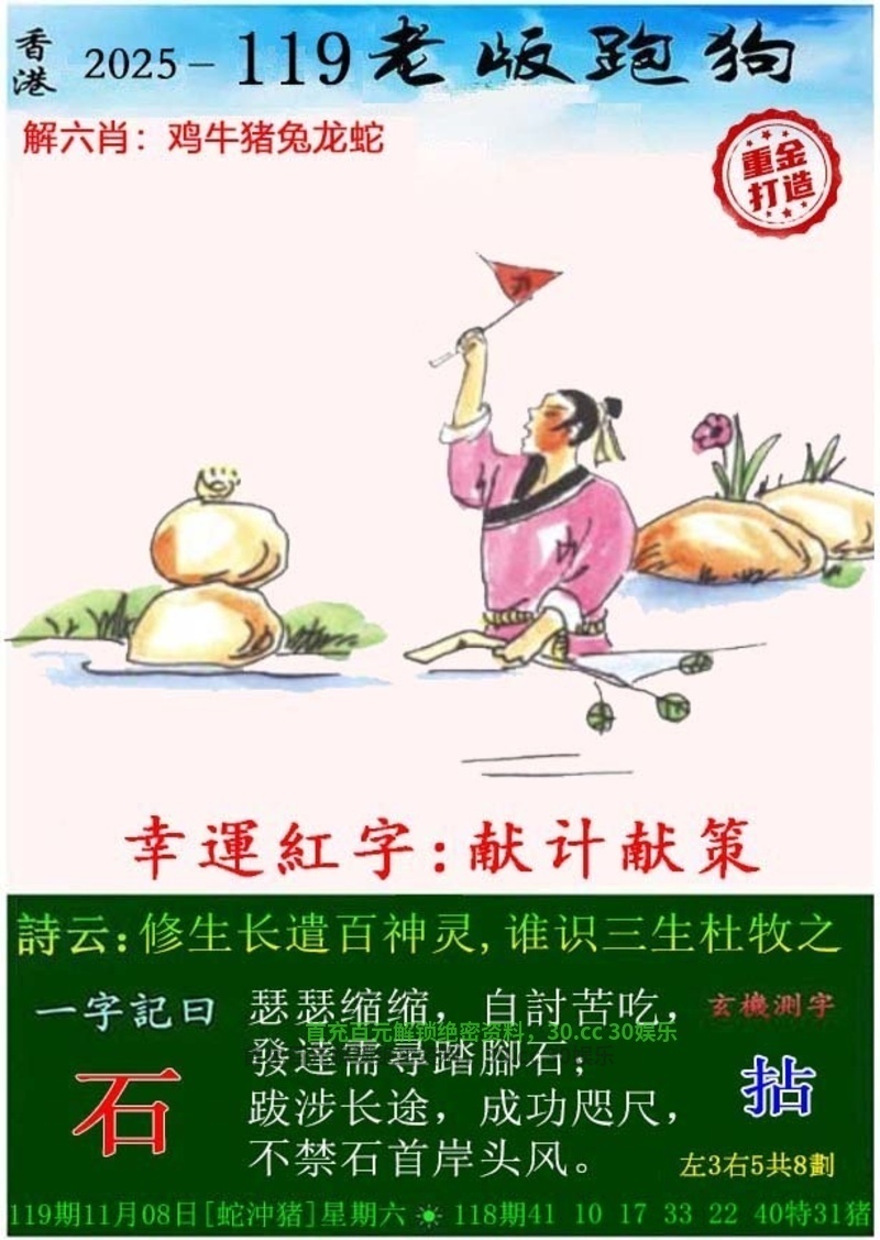 | 115期:三行中特【火.土.金】开:蛇01准 |